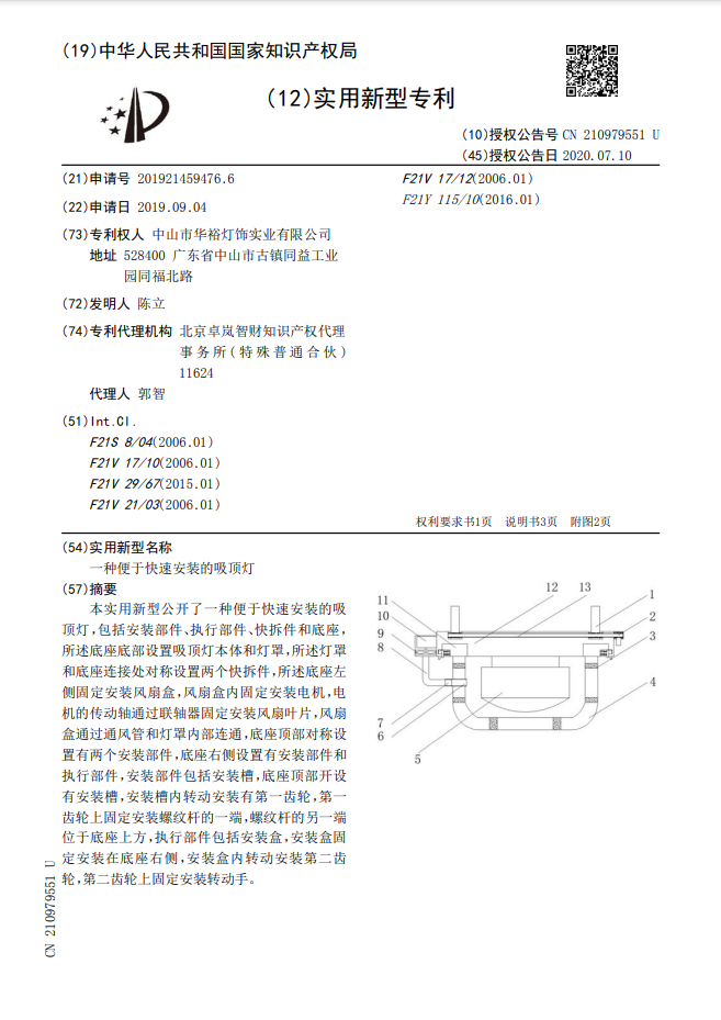 一種便于快速安裝的吸頂燈