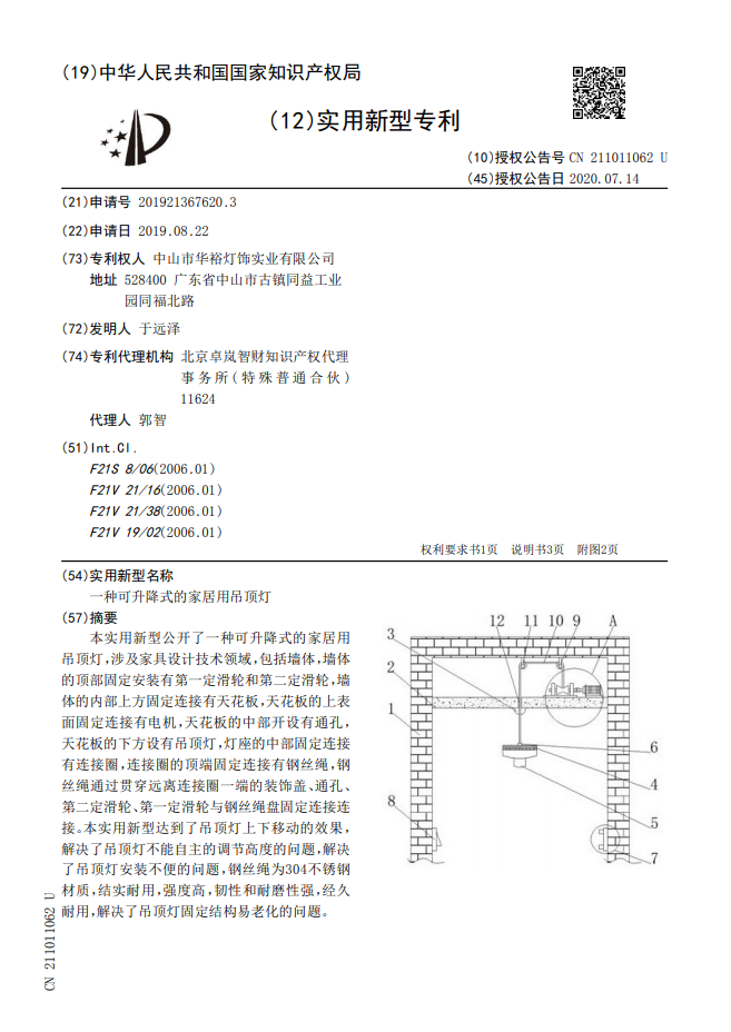 Liftable ceiling lamp for household use